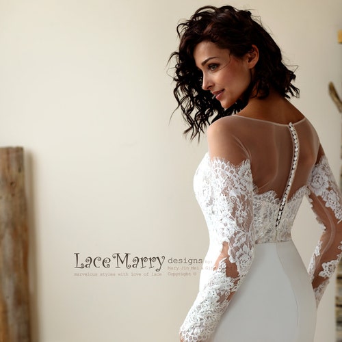 Off Shoulder Lace Wedding Dress With Long Sleeves And Illusion Etsy